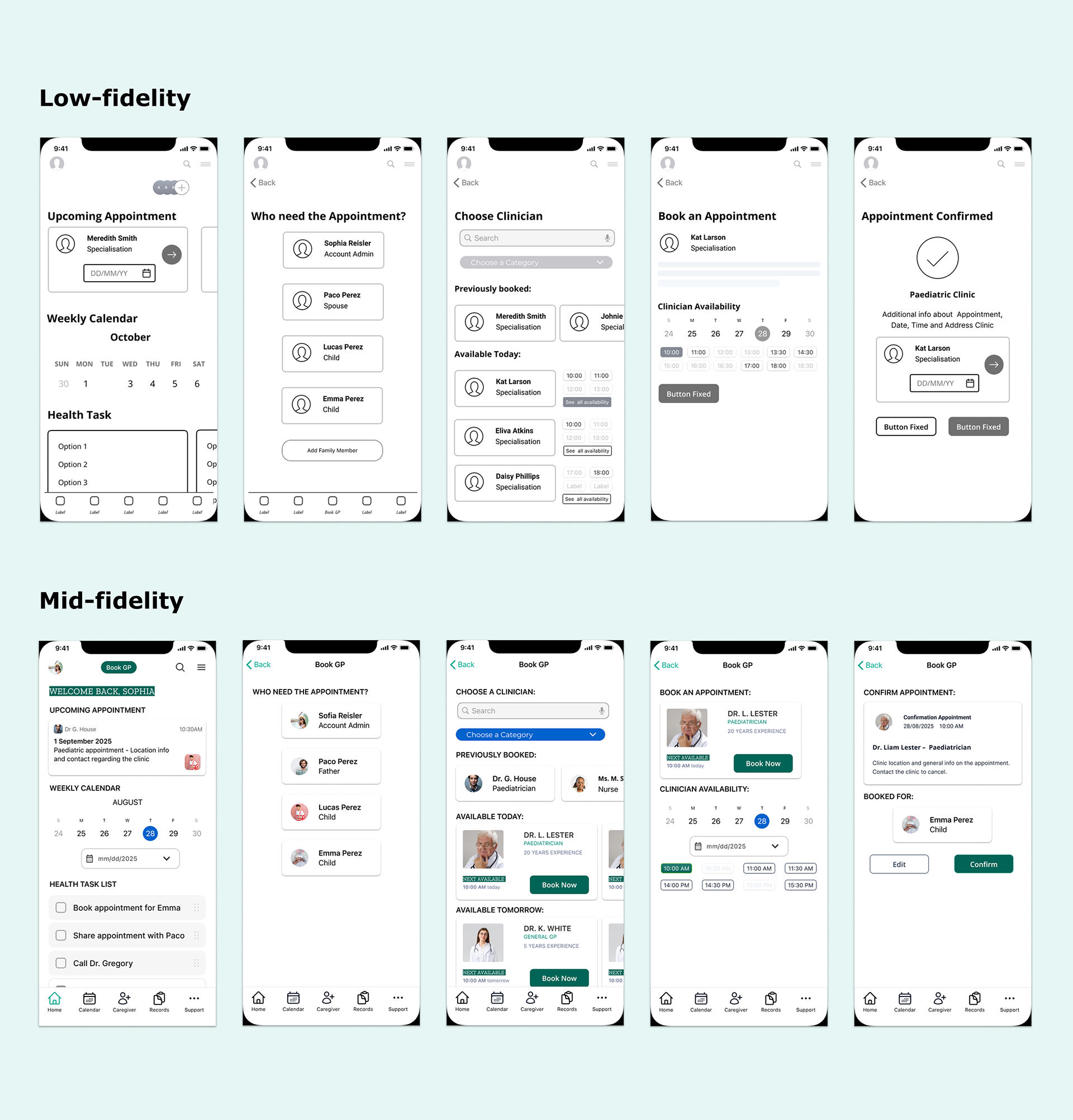• Caregiver flow includes confirmation steps
